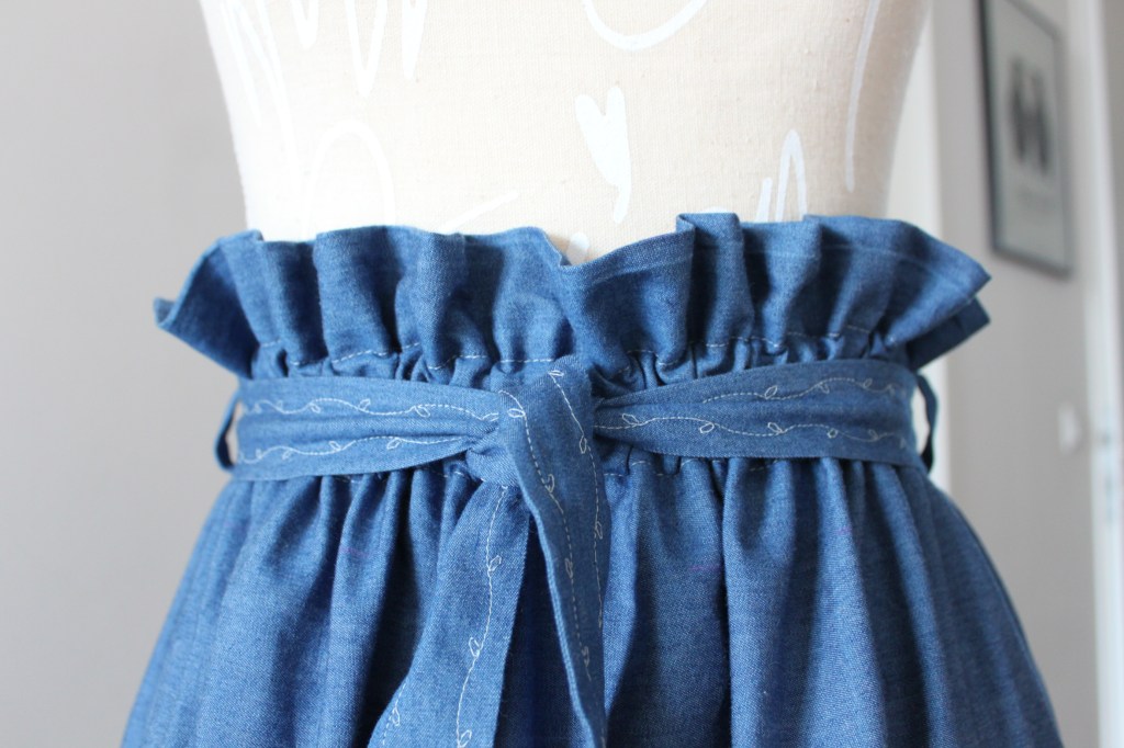Nachdem ich ja relativ neu im „Nähbusiness“ bin wusste ich bis dato nicht, dass es bereits bestickte Stoffe gibt. Als ich dann diesen das erste Mal im Stoffgeschäft gesehen habe, war es LIEBE auf den ersten Blick. Ich musste auch nicht lange überlegen welches Schnittmuster ich für diesen Rock nehmen sollte, denn der Paperbagrock schien mir wie für so einen Stoff gemacht.